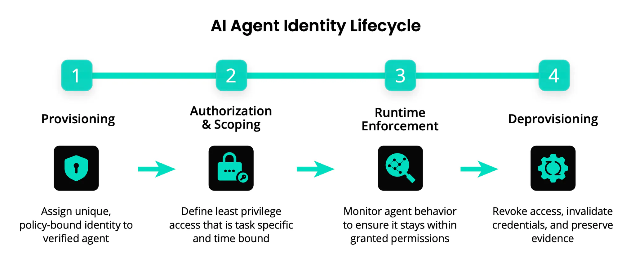 Start with identity. Issue distinct, short-lived identities to agents, enforce task-scoped authorization externally, monitor activity in real time, and remove access automatically when work completes. The full deployment model is detailed in the guide.