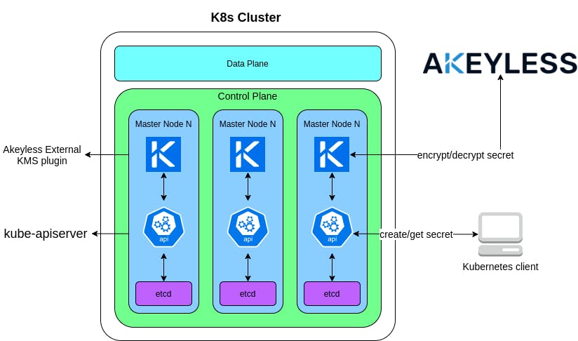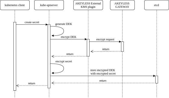 - akeyless-kms-plugin encrypts the DEK with a KEK