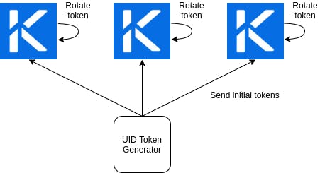 The operations of sending machine-generated tokens to the master nodes are implementation specific and rely on your environment.