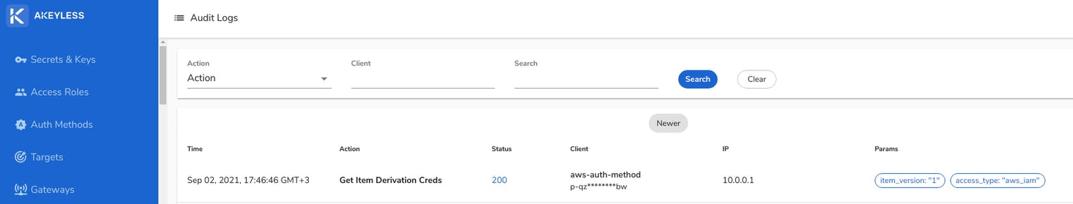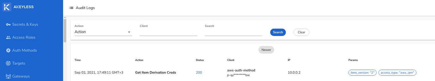 Once you have decided your deployment strategies and have followed the plugin configuration guide, we can take it a bit further and check Akeyless Audit Logs to see our plugin running Encryption and Decryption requests: