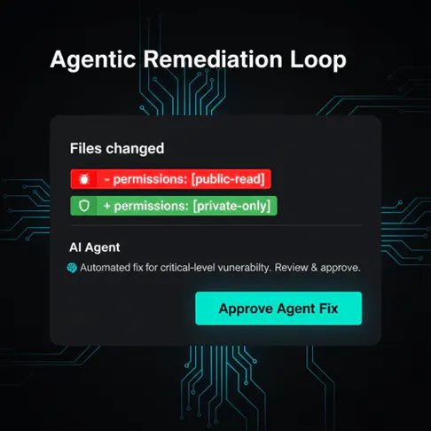 - Instant Configuration Fixes: If a developer checks in a file with broad permissions or insecure defaults, an AI Agent automatically generates a “hardened” version of that file. The developer simply hits “Approve” to let the agent swap the insecure code for the secure version.