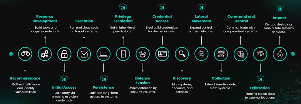 No phase of an attack is overlooked. Whether it’s defending against credential theft during the “Credential Access” stage or blocking lateral movement across systems, the framework ensures all potential vulnerabilities are addressed.