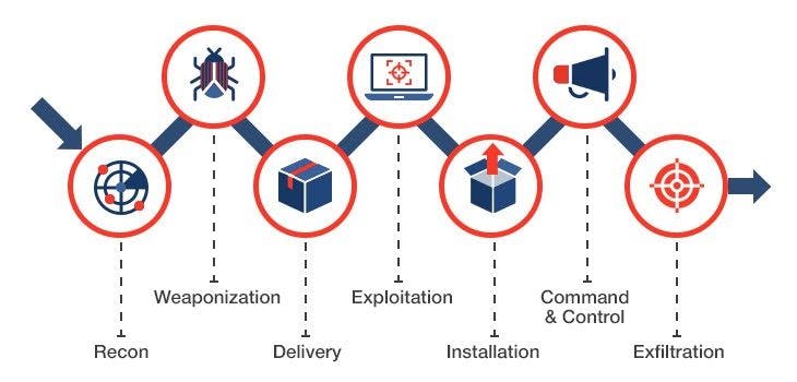 To better understand why this simple approach is so effective, we need to look at the killchain. The killchain is a set of steps an adversary has to go through to be effective at compromising   your resources. The attacker’s weakness is that their attack strategy is only as strong as this chain’s weakest link. An attacker must get, and, more importantly, maintain control of the full killchain to be successful.