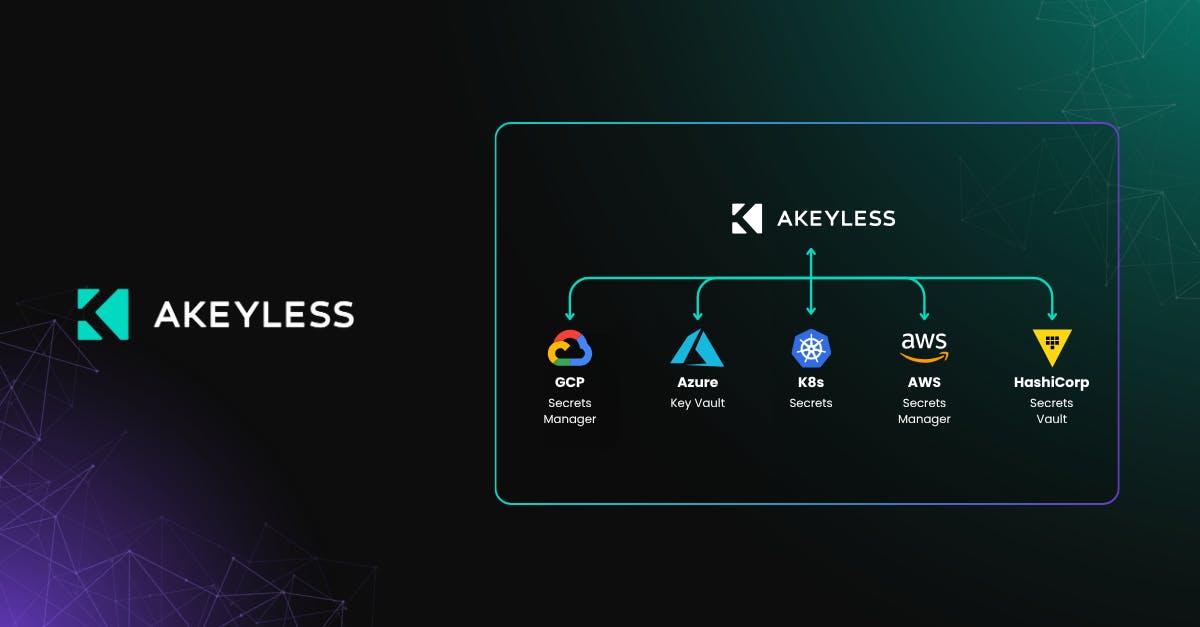 Akeyless supports AWS Secrets Manager, Azure Key Vault, Google Secret Manager, HashiCorp Vault, Kubernetes, and CSV sources.