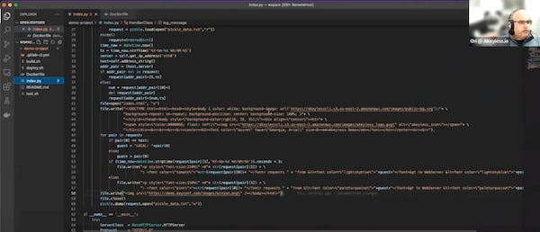 So, this is a sample code that I’m using. Essentially, it’s writing a HTML file. So, what I’m going to do here, just going to copy to modify that to this one. I’m just going to do some random code change, so I’m going to change the color of the Akeyless demo logo and I’m going to modify that, kind of to imitate that this was a bug fix, right? So, I’m saving the file, and I’m going to commit the changes to my source repo, which is I mentioned this in GitLab, right? I’m going to push changes to the repo.