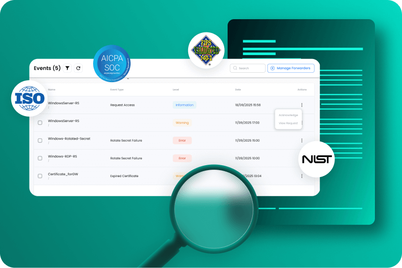 Session Recording and Audit Trails Prove compliance and accelerate investigations. Record every privileged session and account activity, capture detailed user actions and commands, and maintain auditable logs that stand up to regulatory scrutiny.